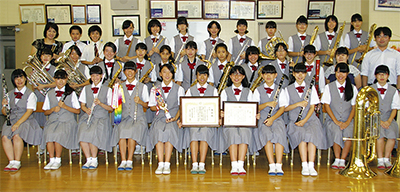 同部が出場する吹奏楽コンクールは、中学校の部B部門。演奏する曲は鈴木英史氏作曲の「カントゥス・ソナーレ」。外部講師が同部に合った曲をセレクトした。部員は33人。毎日、朝練習30分、午後練習1時間の練習時間を確保。合奏では音程が合わず、4拍子から2拍子になり、リズムも変わる曲を仕上げるのが大変だったと振り返る。頭の中で常に曲が流れるくらいさらい、まさに努力の結晶だった。その練習の成果が実り、金賞が発表されたときは、部員から歓声が上がり皆で喜び合ったという。