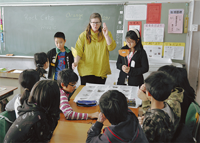 この日教壇に立ったのは、セントラルコネチカット州立大学のクリスティー・ワード教授(45)。5年生の全4クラスを対象に、黄色とオレンジ色の2チームに分かれ単語の聞き取りを競い合う、ゲーム感覚の授業が行われた。普段とは異なる内容に児童たちは盛り上がりながら、意欲的に取り組んでいた。