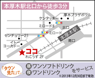 ■厚木市中町4の4の15 厚木TMビル2F (昼)11時半〜14時半 (夜)17時半〜24時 年中無休 【電話】046・244・5350