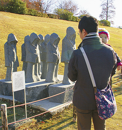 同公園内の2カ所には案内看板を作り市内にゆかりのある美術作家の彫刻作品10点が並び、公園を訪れる人々の目を楽しませている。