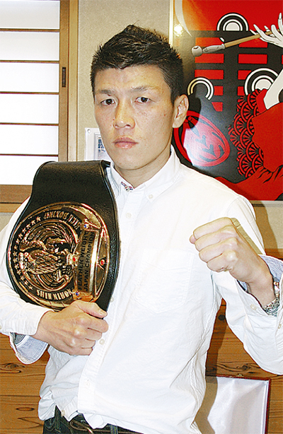 昨年12月8日、後楽園ホールで行われたタイトルマッチで瀬戸口勝也選手(同級1位・横須賀太賀)を相手に5ラウンド判定勝ちを収め、同選手が持つベルトの3度目の防衛を果たした。瀬戸口選手と3回目の対戦となった内田選手は、「重要な試合。戦略を練って、イメージ通り戦うことができた。相手のパンチを封じ込めれば必ず勝てると思って試合に臨んだ」と僅差での勝利を振り返る。勝った瞬間は、「試合では地元から毎回マイクロバス2台で60〜70人の大応援団が来るので、勝ってほっとしました。(功労賞を受賞しても)やったという気持ちと、まだまだ向上していかなければいけない気持ちの半分半分」と神妙な面持ちで話した。「強くなりたい。うまくなりたい」との一心でやってきた内田選手。肉体と精神とのバランスがうまくかみ合っていかないとリングに上がったときに良い動きができず、日々の体重管理と精神面のコンディション管理を怠らない。「スランプも調子の良い時期もあった。山あり谷あり。だから今がある。さらなる頂点を目指します」と抱負を話した。