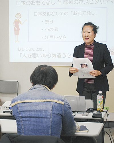 6日に行われた第1回。会場のあつぎにぎわい処(市内中町)には、飲食店や書店、美容室などの経営者や従業員、開業希望者など約10人が訪れた。この日のテーマは「『おもてなしの心』の店への活かし方」。あつぎみらい21の伊藤裕美子さん(中小企業診断士)が講師を務めた。