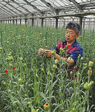 5月11日(日)の「母の日」を目前に控え、市内カーネーション農家の収穫が佳境を迎えている。