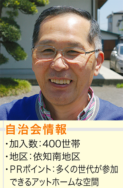 自治会の一大イベントは、高齢の人を招待し、中津川河川敷での「ふれあいバーベキュー大会」。毎年防災の日に合わせて開き、子ども会も参加する手作りの行事に約200人が参加する。住民からの「良かった」との声が何よりも励みだ。