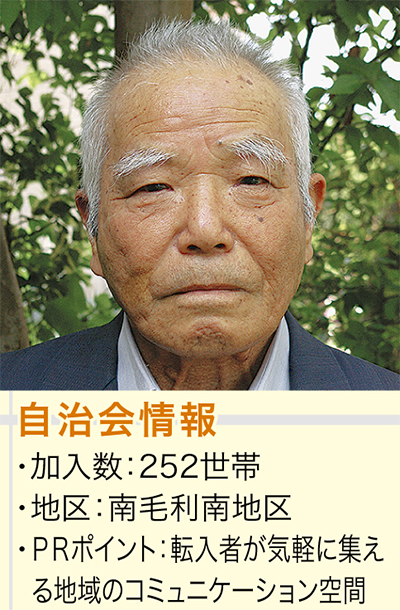 転入者が多い地区。「地域のコミュニケーションが欠かせません。特に、住民が集う場所を大事にしていきたいですね」と力強く話す。夏の納涼祭、冬の餅つき大会を毎年行い住民の声も上々だ。自治会の本来の姿は「子どもを面倒みてくれる上の世代がいること」