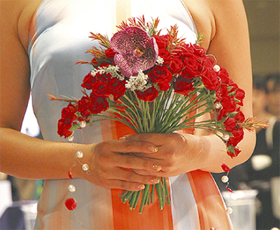クイーンズスクエア横浜で10月26日に開催されたフラワーデザインコンテスト第6回クイーンズカップ(主催/同実行委員会)のウェディングブーケ部門に出場したフローリスト三田(厚木市中町)の中村久美さんが4位に入賞した。