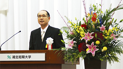 来賓には、小林常良厚木市長、神奈川県私立短期大学協会会長の渡辺勝之氏、学校法人ソニー学園理事の中鉢良治氏、同理事の藤田州孝氏が来賓として出席し祝辞を述べた。