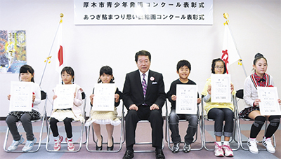 このコンクールは、あつぎ鮎まつりの花火大会やダンスレジェンドなどを題材に、市内23校の小学生によって描かれた絵画作品を表彰するもの。1782点の応募の中から最優秀賞1点と、優秀賞5点が選ばれた。