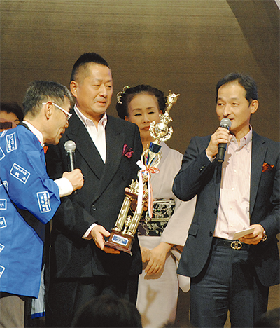 ゲスト歌手らの審査で選ばれた年間王者は、4月の大会で優勝した妻田北の松山高士さん・川島覚さんデュオ。徳永英明さんの『レイニーブルー』を歌った2人は、地元ソフトボールチームの監督と主将。高山さんは「エントリー番号を呼ばれても優勝したと分からなかった。これまでカラオケを歌い続けてきてよかったです」と声を弾ませた。