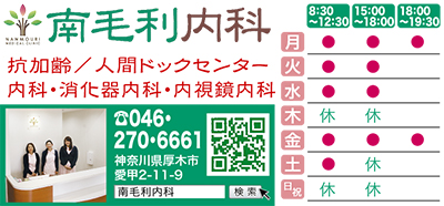 「南毛利内科」の内山順造院長は、「日本人の死亡原因のトップはがんですが、がん検診受診率は20%を下回っています。がんの2/3は予防・早期発見治癒が可能です」と話す。そのためには禁煙・ピロリ菌の除菌・食事・運動の見直し、毎年の検診が重要だという。