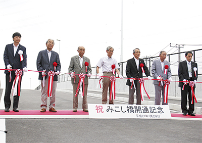 92年の発案当時からこの事業に関わってきた大貫実行委員長にとっても、橋の完成は一つの区切り。「いろいろと、皆の意見をまとめるのは大変だったけれども、念願だった橋も完成してほっとしている。あとは新東名の完成を待つだけ」と、これまでを振り返った。