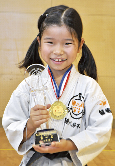 少林寺流錬心舘湘北支部(浜邉秀典支部長)の上荻野小空手教室に通う樋口侑香さん(上荻野小3年)が、8月2日に台湾で行われた同舘国際親善空手道選手権大会の小学校低学年の部、型組で初優勝を飾った。