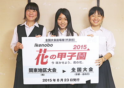 厚木高校華道部(野手美奈子顧問/部員数17人)に所属するチームが8月23日、都内で行われた「Ikenobo花の甲子園2015」の関東地区大会に出場し、代表校として全国大会の出場権を獲得した。2012年以来、2回目。