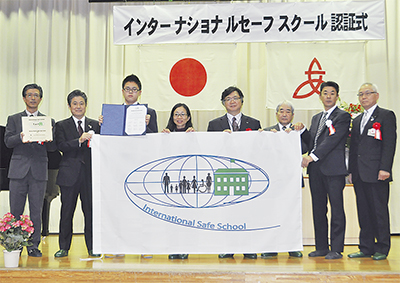 ISS認証とは、世界保健機関(WHO)が推奨する、怪我やいじめなどを予防し、安全で健やかな環境作りに取り組む学校に与えられる認証制度。SCを評価するNGO国際SC認証センター(本部スウェーデン)によって認証されるもので、世界130以上の学校が取得しており、同校は国内中学校で3校目。