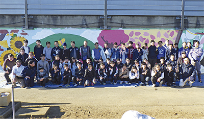 南毛利南地区落書き対策検討委員会(渡邉征一会長)は1月23・24日、市内船子の国道246号線の下り車線南側の外壁、約45mに壁画を制作した。