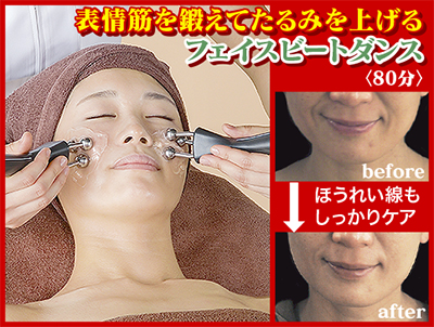 フェイシャルコースでは、新登場の「フェイスビートダンス」が早くも話題に。表情筋を鍛えて顔面の深層からシェイプアップするから、むくみ、たるみもすっきり。「顔印象マイナス10歳」を叶えるための、まったく新しい内容になっている。