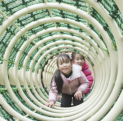 オープン初日に訪れた妻田在住の伊藤規子さんは、「広いので思ったよりも長い時間楽しめそう。自然の中で遊べるのはいいですね」と話し、娘の瀬音花ちゃん(9)と蒼空ちゃん(6)は、リスの道を体験して「もう一度やりたい」と笑顔を見せた。