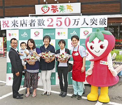 JAあつぎ(大貫盛雄代表理事組合長)が2009年12月にオープンさせた大型農産物直売所「夢未市」本店(市内温水)の来店者数が6月9日、250万人を突破した。
