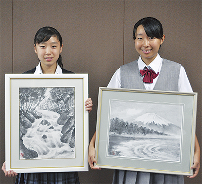 妻田西在住の水墨画家・又村和夫さん(82)主宰の水墨画教室に通う新藤莉子さん(玉川学園中学部2年)、佐々木麻又さん(小鮎中3年)がこのほど、神奈川県水墨画美術展ジュニアの部で3年連続の入賞を果たした。7月4日には小林常良厚木市長、曽田高治教育長を表敬訪問し、3度目の快挙を報告した。