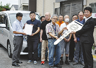全日産・一般業種労働組合連合会(高倉明会長)がこのほど、市内飯山にあるつばき作業所(横見守明所長)に日産セレナを寄贈し、7月25日に同作業所で寄贈式が行われた。