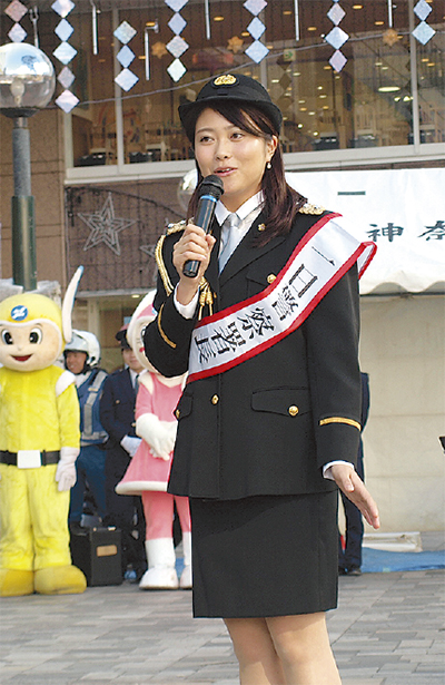 この日、一日警察署長にTVKアナウンサーの久本真菜さんが任命され、本厚木駅前周辺をパレード。駅北口では県警察音楽隊による演奏やカラーガードの華やかな演技が披露された。