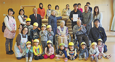 特別養護老人ホーム第二森の里に2月15日、「米1トン」というビッグなプレゼントが届けられた。これは市内妻田南で米の卸・小売店(株)稲田稲吉、リフォーム会社を経営する山根太一さんが寄贈したもの。山根さんの祖父がかつて同施設に入居していたことから「いつか恩返しがしたかった」と考えていたという。元市議の村井正光さんが仲立ちし実現。同施設の西迫玲子理事長は「こんな素敵なプレゼントは初めてです」と笑顔で感謝の辞を述べた。