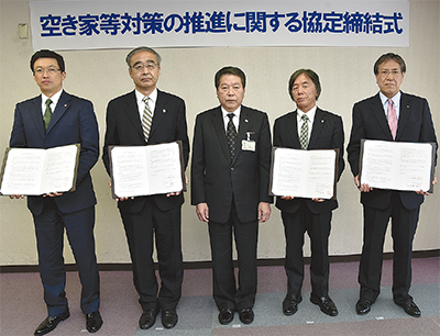 市が昨年、一戸建て住宅を対象に行った実態調査では、755戸の空き家が確認されている。今回協定を結んだ4団体は、昨年2月に同計画策定を目的に設立された「市空家等対策協議会」にメンバーを派遣し、専門家の立場から協力してきた。