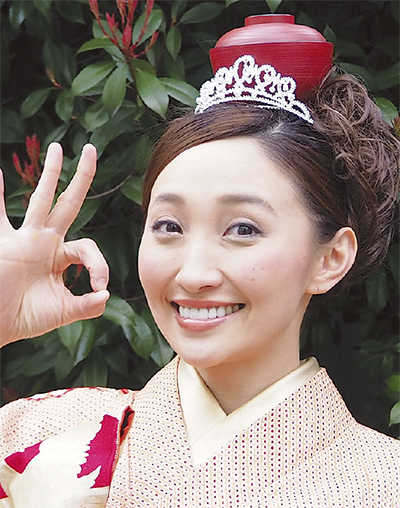 ○…「自然豊かな厚木から、みその素晴らしさを全国に、世界に広めたい」。そう語るのは思わず凝視するコスチュームに身を包んだキュートな女性。その名も「ミソガール」。ミニ丈の着物、赤ちゃんをイメージする帯は前結び、髪飾りはみそ汁のお椀とティアラ。みその普及のために「とにかく目立たないと」ととびきりの笑顔を見せる。