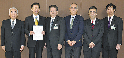 厚木市は「企業等の立地促進等に関する条例」の適用企業として市内温水に事業所を持つ東リ株式会社(永嶋元博代表取締役社長、本社・兵庫県)を認定。3月27日に市役所で決定通知書の交付式が行われた。