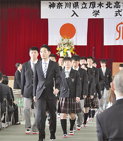 市内下荻野にある神奈川県立厚木北高校(河原克宣校長・生徒数861人)で4月6日、2017年度の入学式が行われた。今年度から県内で初めて設けられる「スポーツ科学科」の生徒39人を含む、278人の新入生が期待を胸に「北高生」の仲間入りを果たした。