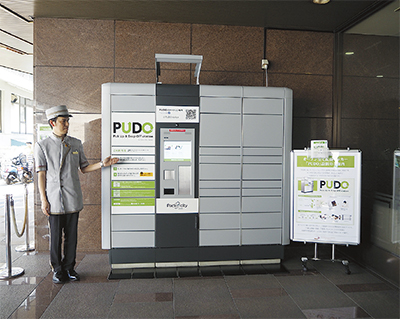 これはオープン型宅配便ロッカー「PUDOステーション」というもの。オープン型宅配便ロッカーは、マンション内などに設置されている利用者限定の宅配便ボックスなどとは異なり、だれもが利用でき、複数の宅配会社からの荷物を受け取ることができる。