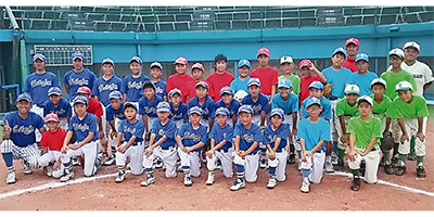 また同時に、厚木市少年野球協会(山口貴裕会長)は市内企業からの協賛で、宮城県石巻市から「開北小オークス」=写真右=を迎え、交流戦も行った。石巻の子どもたちは鮎まつりの花火大会も見学し「こんなたくさんの花火が上がるのは初めて!」と大喜び。厚木球児と友情を深め、最後に「次は甲子園で会おう!」と固い約束を交わした。