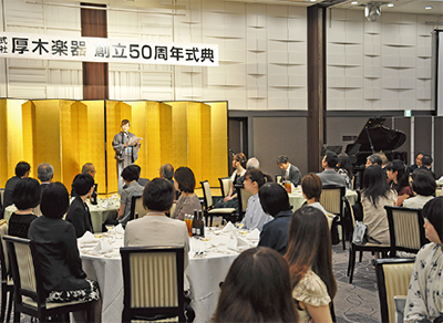 (株)厚木楽器(市内寿町/万年佐和子代表取締役社長)が設立50周年を記念し10月10日、レンブラントホテル厚木で記念式典を開催した。
