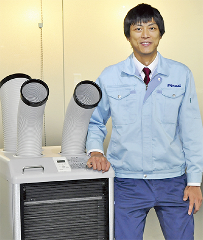 一般的に、工場や倉庫のような大空間では、人のいるエリアだけに空調を当てる「スポットクーラー」を使用している。ところが、ドレン水を溜めるタンクが満水になる度、捨てに行かなければならず、課題になっていたという。そこで、もともとドレン水をユニット内で蒸発させる技術を持っていた同社では、スポットクーラーに応用した。