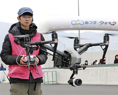 ▽昨年10月、市内戸室の自宅前を事務所とし、父と二人三脚でドローンの空撮や映像編集などを行う会社『スカイジョブ』を立ち上げた。ドローンは橋梁の検査などのほか、災害時には捜索など人助けもできる。「会社はトップシェアを目指し、レースでは世界で戦えるように。他の人ができないことを進んでやっていきたい」。まだまだドローンの可能性は未知数。ドローンが舞う大空のように、夢はどこまでも広がる。