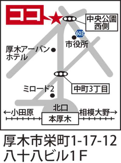 神奈川県厚木市栄町1-17-12 八十八ビル1F