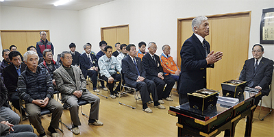 供養祭は、森林や農作物の獣害対策として、17年度にわな部会が駆除したイノシシとシカ計42頭を弔う目的で実施したもの。駆除地域は小鮎地区と七沢森林公園内。開会にあたり堀江わな部会長は「生かされ生きる自然循環のバランス維持のため捕獲した、獣霊の御霊に哀悼の意を捧げたい」とあいさつ。わな部会員たちのほか小林常良厚木市長、沼田力(つよし)神奈川県厚木土木事務所長ら23人の列席者が、米山住職の読経にあわせ焼香を行った。