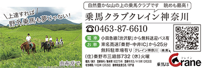 乗馬クラブクレイン神奈川には、親子連れからシニア層まで幅広い世代が通う。馬は大人しくすぐに仲良くなれるので、初心者から楽しめるという。「このGW、日常の喧騒を脱ぎ捨てて、森の乗馬クラブへ遊びに来ませんか?」