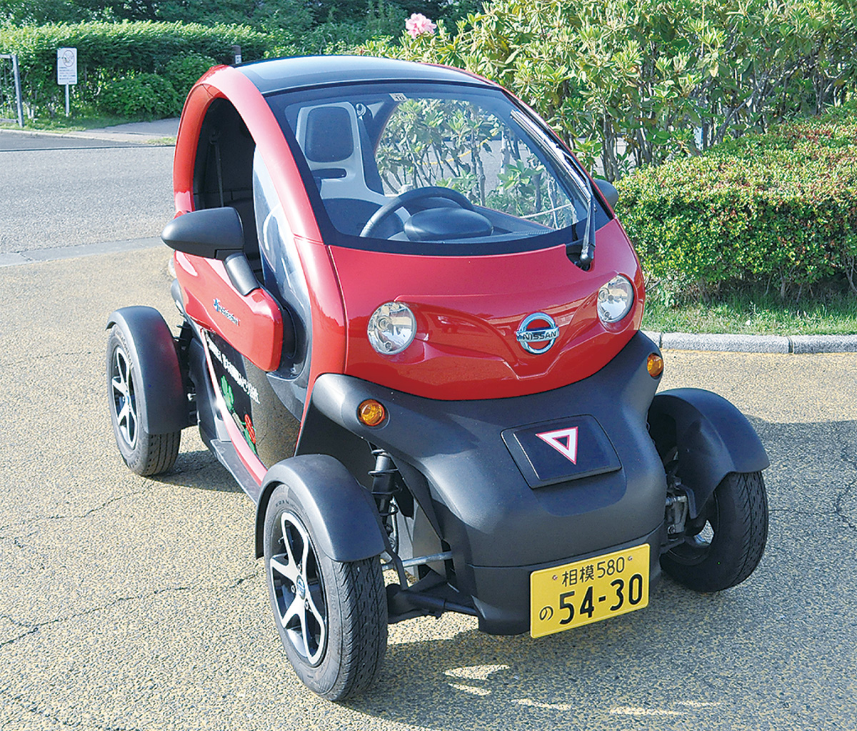 貸与されたのは電気自動車「日産ニューモビリティコンセプト」。全長2m34cm、全幅1m23cm、全高1m45cmで、2人乗りの小型車両。排気ガスはなく、1回の充電で走れる距離は約100Km、最高速度は約80Km/時になる。