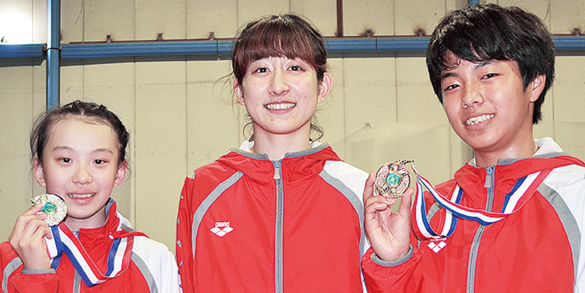 5月に群馬県前橋市で行われた、選考会も兼ねた第5回全日本トランポリン競技年齢別選手権大会で、石田さんは2位、奥山さんは3位に、オープンの部女子で中村さんが11位だった。