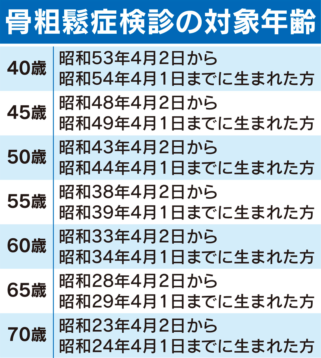 骨粗鬆症の早期発見を-骨密度検診が始まります-