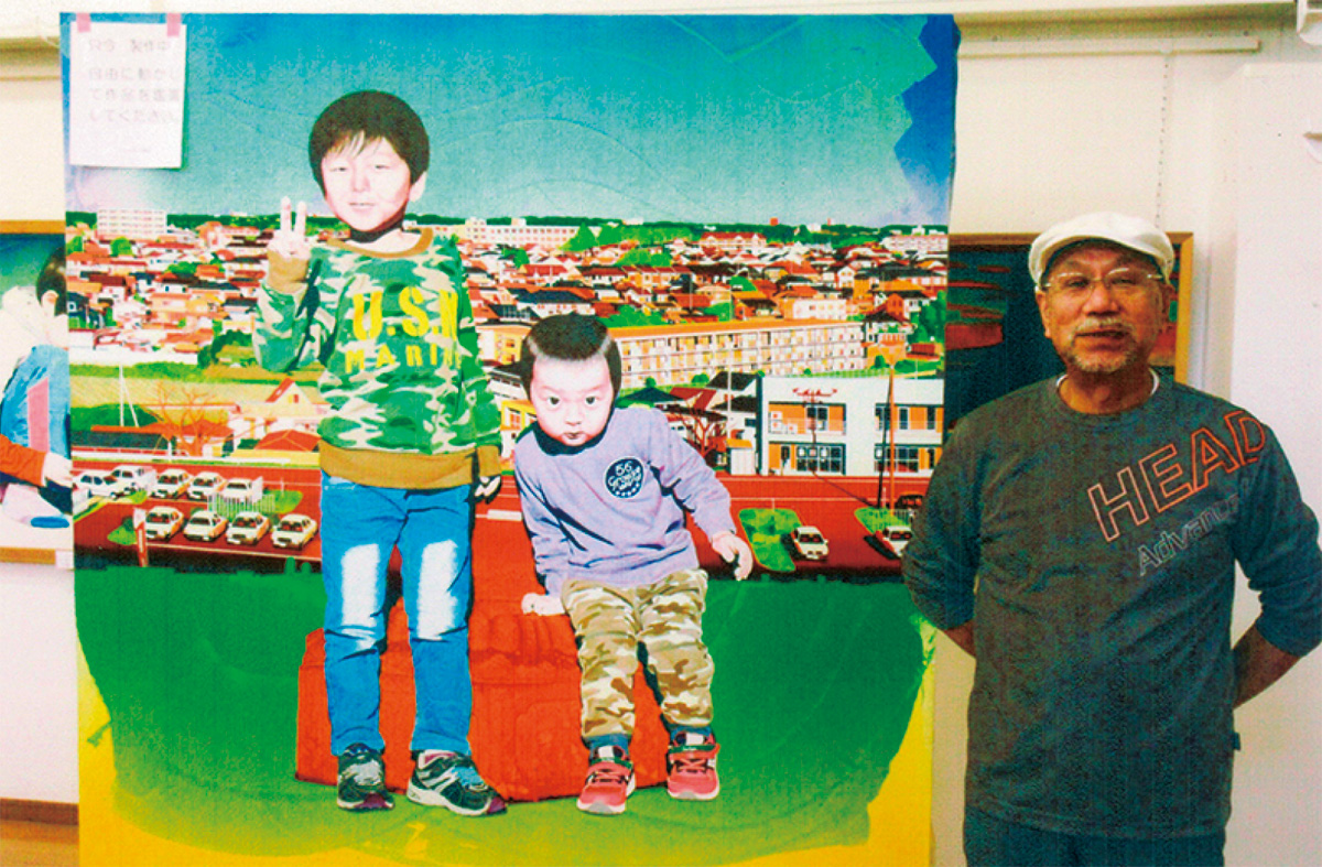 厚木中央自動車学校を背景に、2人の孫を描いた今回の入選作「One fine day 2018」=写真下(小平さん提供)=は、9月5日(水)〜30日(日)に神奈川県民ホールで、10月3日(水)〜13日(土)は厚木市文化会館の「厚木巡回展」で観覧可能。