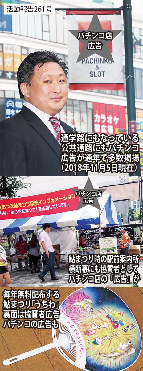 また、あつぎ鮎まつり等のイベント時にも、裏にパチンコ店の広告が、印刷された「うちわ」が毎年大量に配布されます。