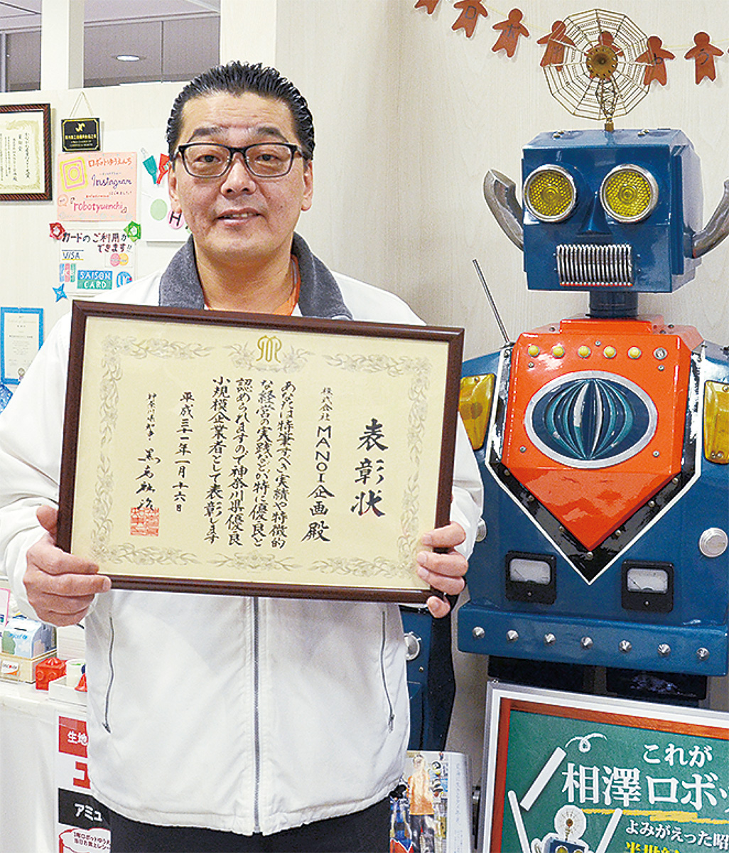 神奈川県が、ものづくり産業の発展に貢献している企業を表彰する「優良小規模企業者」に、株式会社МANOI企画(岡本正行代表取締役)が市内から唯一選ばれた。受賞に岡本代表は「市にも推薦して頂けて、大変ありがたい。このような形で県内の方に知ってもらえるのはとても嬉しい」と喜ぶ。