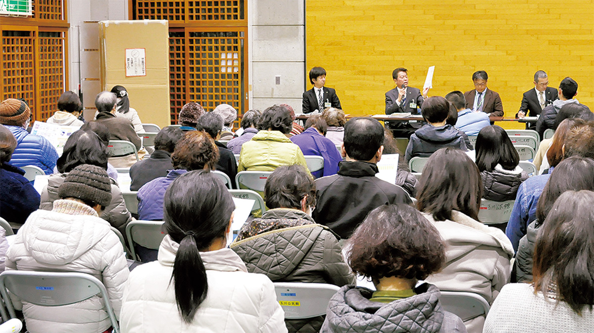現在、市では対象地区の住民に向けて説明会を開催し、事業の周知を行っている。1月29日に玉川公民館で開催された説明会では、「不法に放置されたゴミは回収されるのか」「回収に時間がかかるとカラスが来ないか心配だ」などといった質問や意見が住民から上がった。市の担当者は、不法に放置されたゴミについては「通報があればすぐに回収に行く」、収集時間については、「人員、車を増やし、今より45分程度は回収に時間がかかるが、午前中には回収する」と回答した。