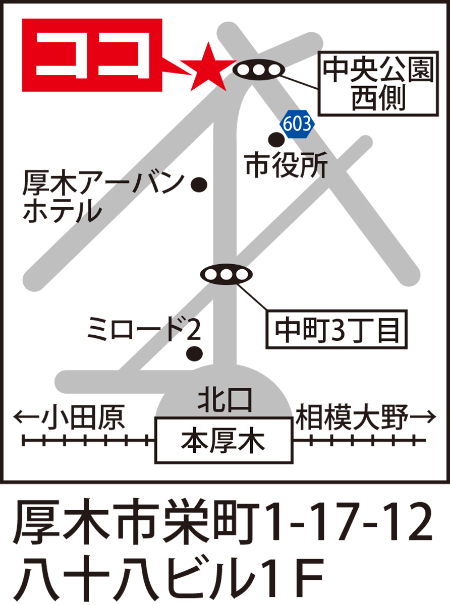 神奈川県厚木市栄町1-17-12 八十八ビル1F