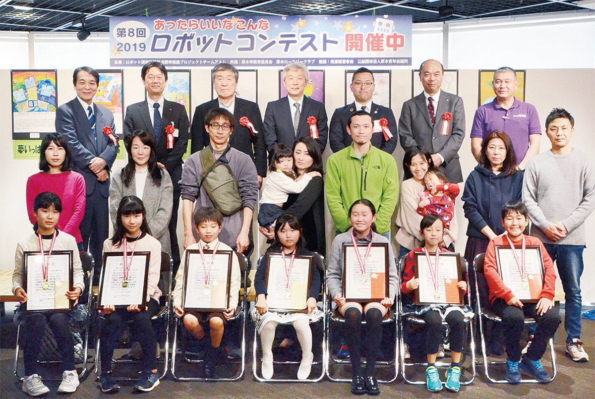 同コンテストはロボット研究開発拠点都市推進プロジェクト「チームアトム」が主催し、市教育委員会が共催。地域の魅力を発信する企画に賛同する厚木ロータリークラブが協力する。当日は児童たちの描いた思い思いの作品80点以上が展示され、多くのギャラリーが会場を訪れた。また10日には表彰式も行われた。