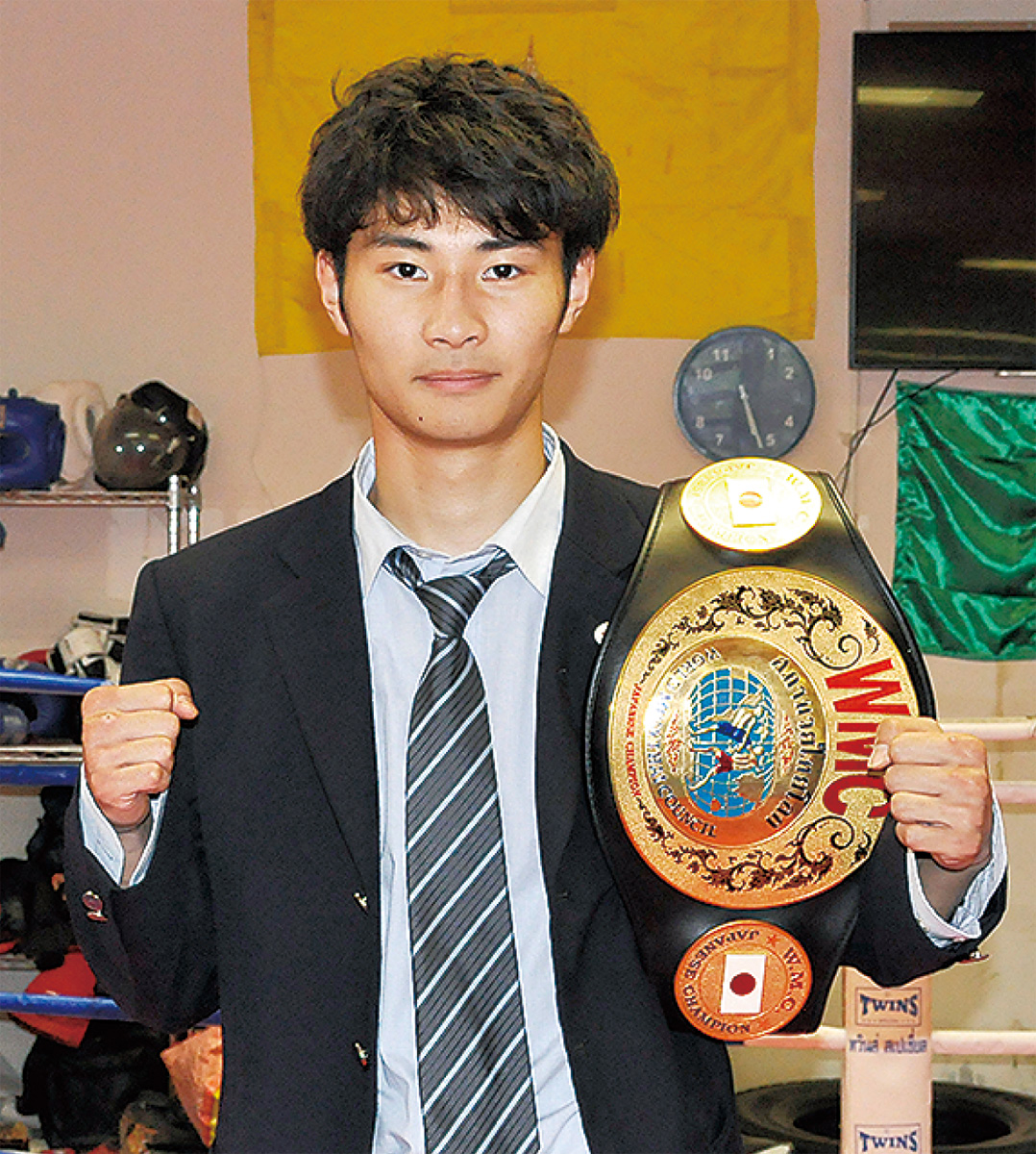WMC日本バンタム級の王座決定戦が4月14日に横浜大さん橋ホールで開催され、温水在住の大田一航君(厚木商業高3年/新興ムエタイジム所属)が判定勝ちし、王座に輝いた。