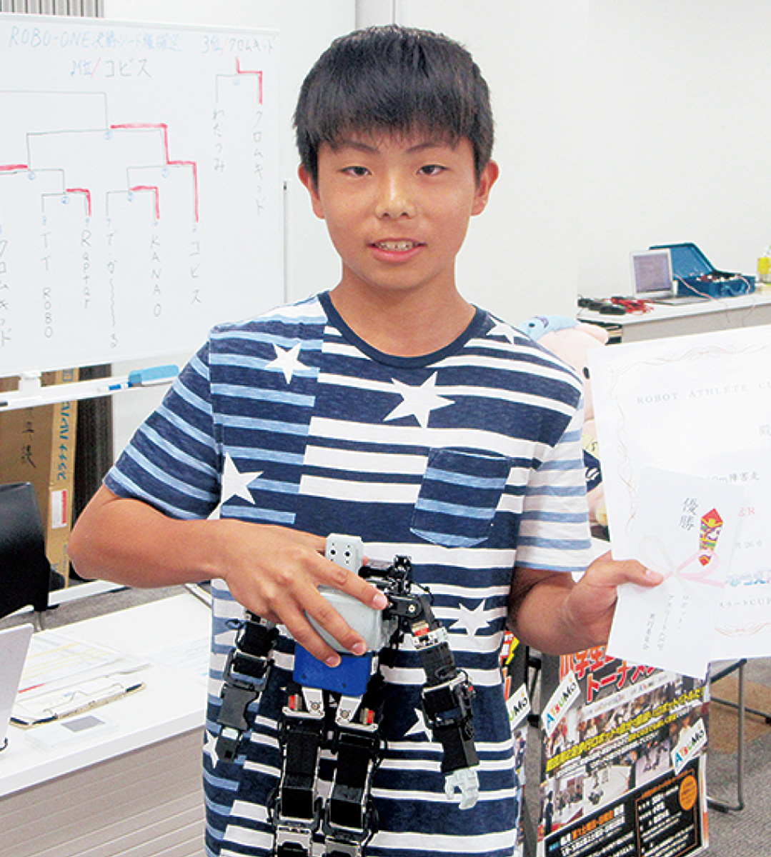 当日は、ダンスや二足歩行ロボットバトルなど熱戦が繰り広げられた。なかでも10m障害では、ロボットゆうえんち(厚木市)の教室に通う辻頼杏(らいあん)君(12)が最年少で優勝。辻君は「とても嬉しい。次の目標は世界大会で先生を倒して優勝すること」と話した。