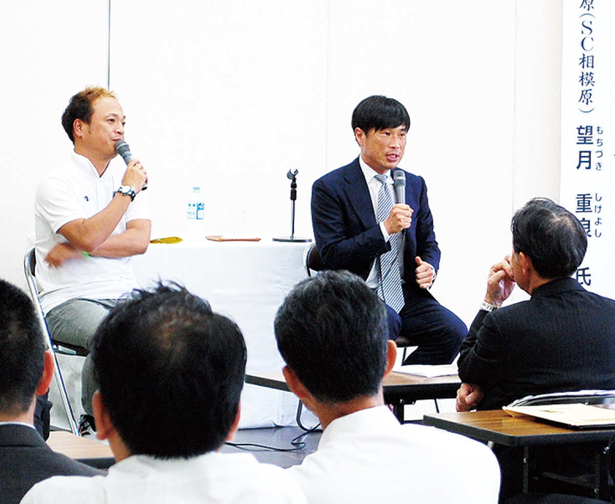 また、総会後はサッカークラブSC相模原の望月重良代表取締役会長とスポーツMCケチャップさんのトークショーが行われ、地域貢献などをテーマに語った。